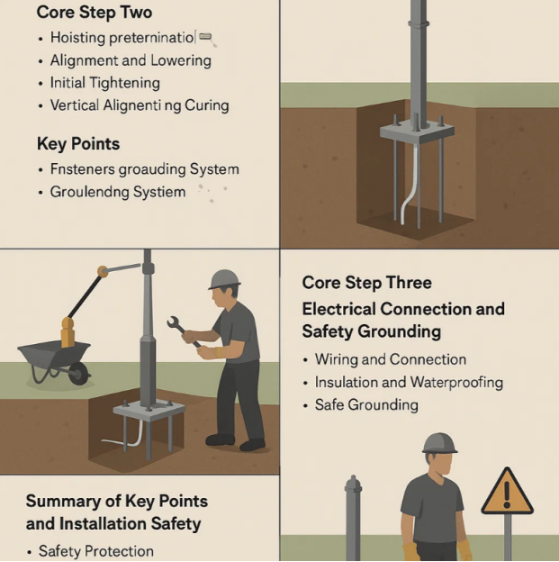 I. الكفاءة والسلامة يسيران جنبًا إلى جنب: نظرة عامة على إرشادات تركيب أعمدة إنارة الحدائق المصنوعة من الألومنيوم