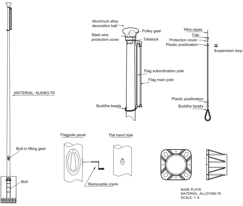 | رقم | الارتفاع (م) | الأنبوب السفلي (مم) | الأنبوب العلوي (مم) | الأنبوب الداخلي (مم) | القطر العلوي (مم) | قطر القاع (مم) | لوحة القاعدة (مم) | لوحة مدمجة (مم) | حجم البرغي (مم) | قطر فتحة التركيب (مم) | ||