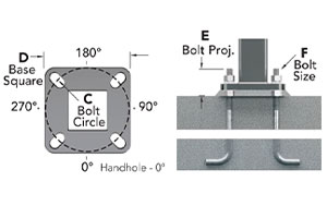 شفة قاعدة من صفائح فولاذية بأربعة مسامير مصنوعة من الفولاذ الكربوني المطابق لمعيار ASTM A36 مع قوة خضوع لا تقل عن 36000 رطل/بوصة مربعة، مع غطاء قاعدة مكون من قطعتين وأدوات تثبيت.